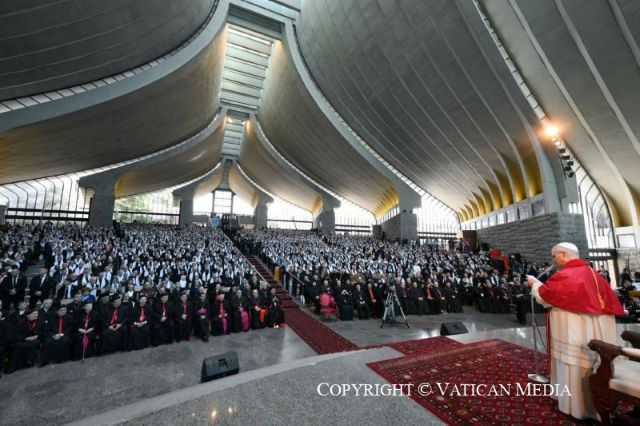 Các bạn thân mến, các cộng đồng của các bạn đã nảy sinh từ sự phong phú của lịch sử lâu dài này, và chính các bạn là những người được kêu gọi hôm nay để vun đắp hạt giống đức tin được truyền lại cho chúng ta bởi Abraham, các Tông đồ và các Giáo phụ. Lịch sử trước mặt anh chị em không chỉ là điều để tưởng nhớ rồi tôn kính như một quá khứ huy hoàng khi chúng ta nhìn với sự cam chịu trước sự nhỏ bé của Giáo Hội Công Giáo về mặt số lượng. Trái lại, chúng ta được mời gọi đón nhận một tầm nhìn Tin Mừng, được Chúa Thánh Thần soi sáng.